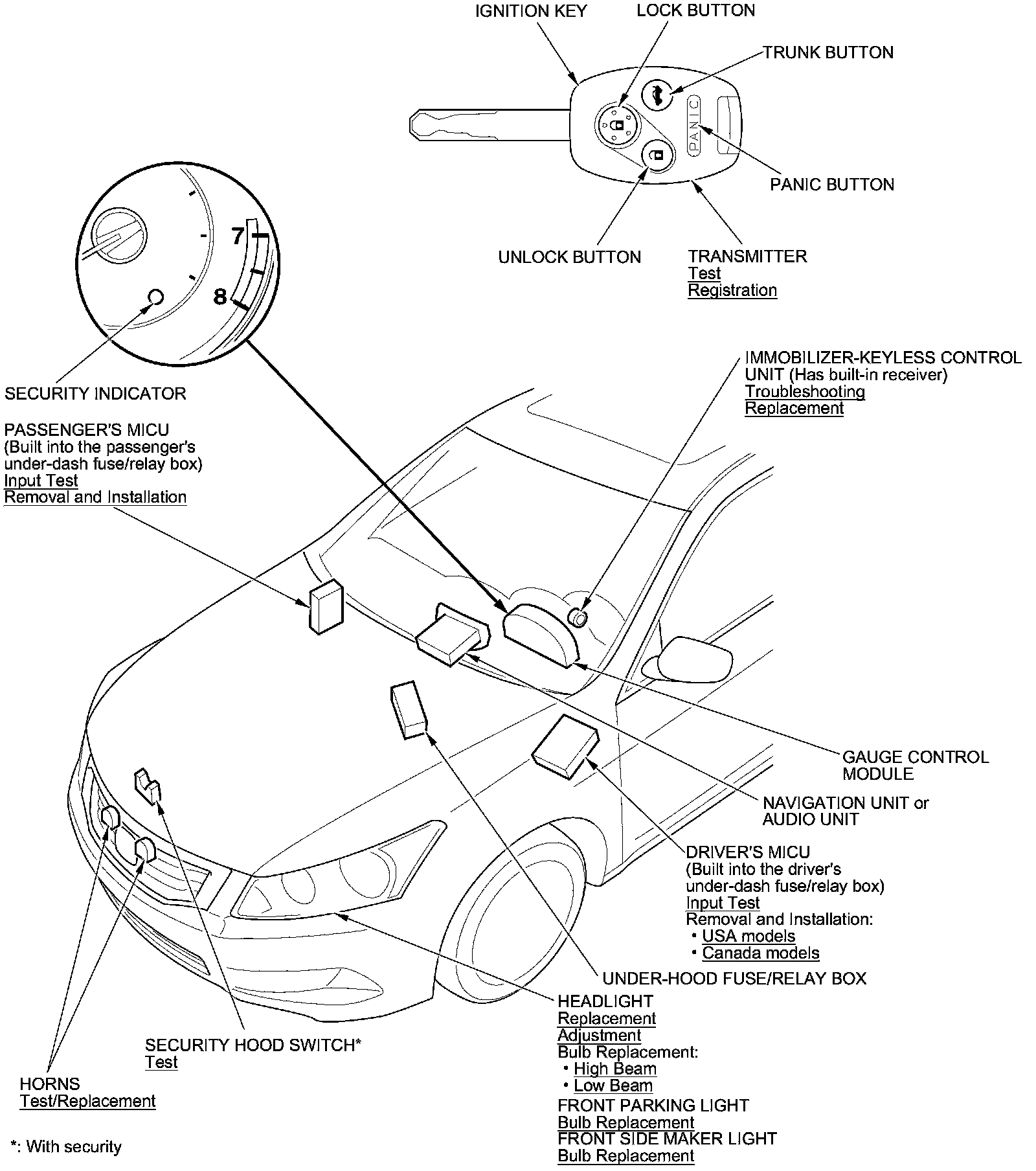 Keyless/Power Door Locks/Security System Component Location Index (4-Door)