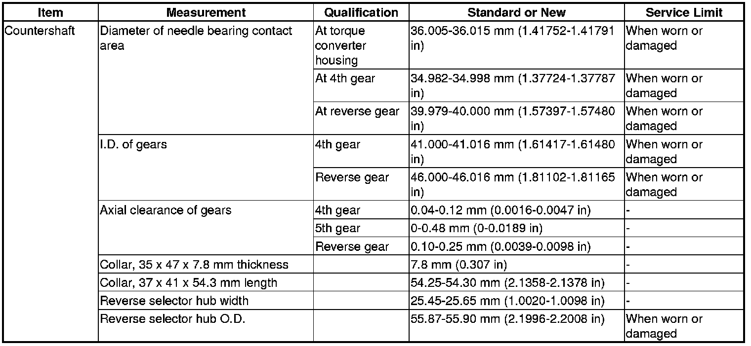 Countershaft Specification(s) (A/T)