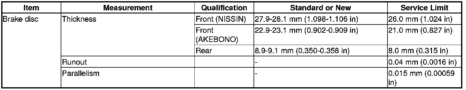Brake Disc Specification(s)