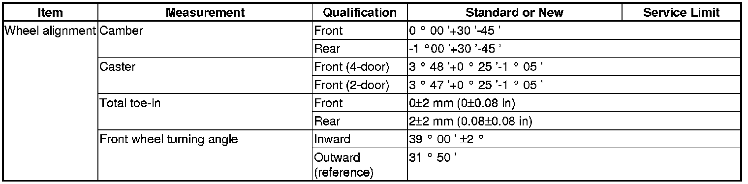 Wheel Alignment Specification(s)