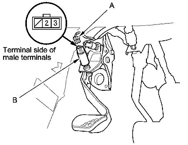 1. Disconnect the clutch pedal position switch 3P connector (A).