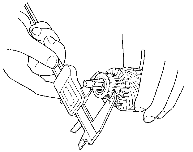4. Check the commutator diameter with a digital caliper or dial type caliper. If the diameter is below the service limit, replace the armature.