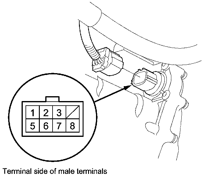 - If the resistance is within the standard, the test is complete, reconnect the connector, then install the front splash shield.