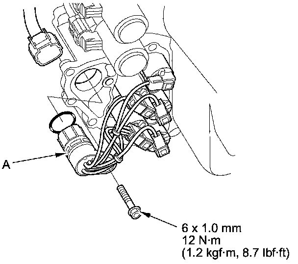 9. Remove the bolt securing the shift solenoid wire harness (A), then remove the shift solenoid wire harness from the transmission housing.