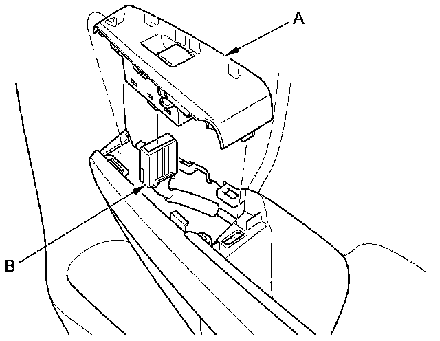 2. Disconnect the 14P connector (B) from the rear power window switch.