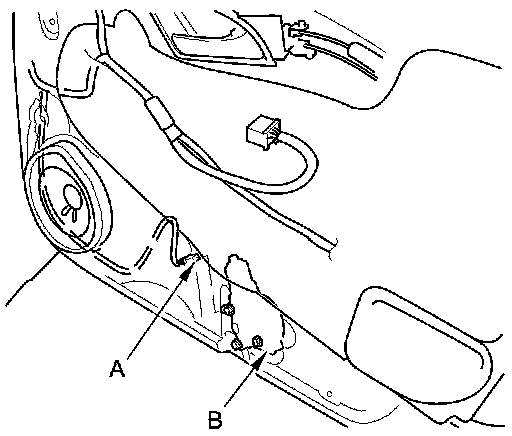 5. Disconnect the 2P connector (A) from the front passenger's power window motor (B).