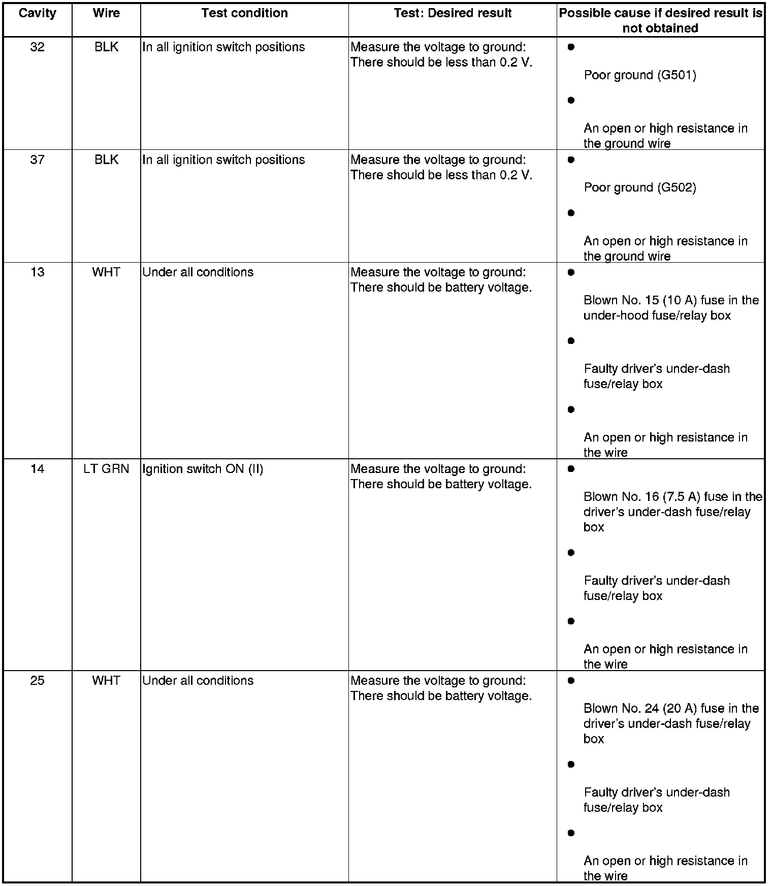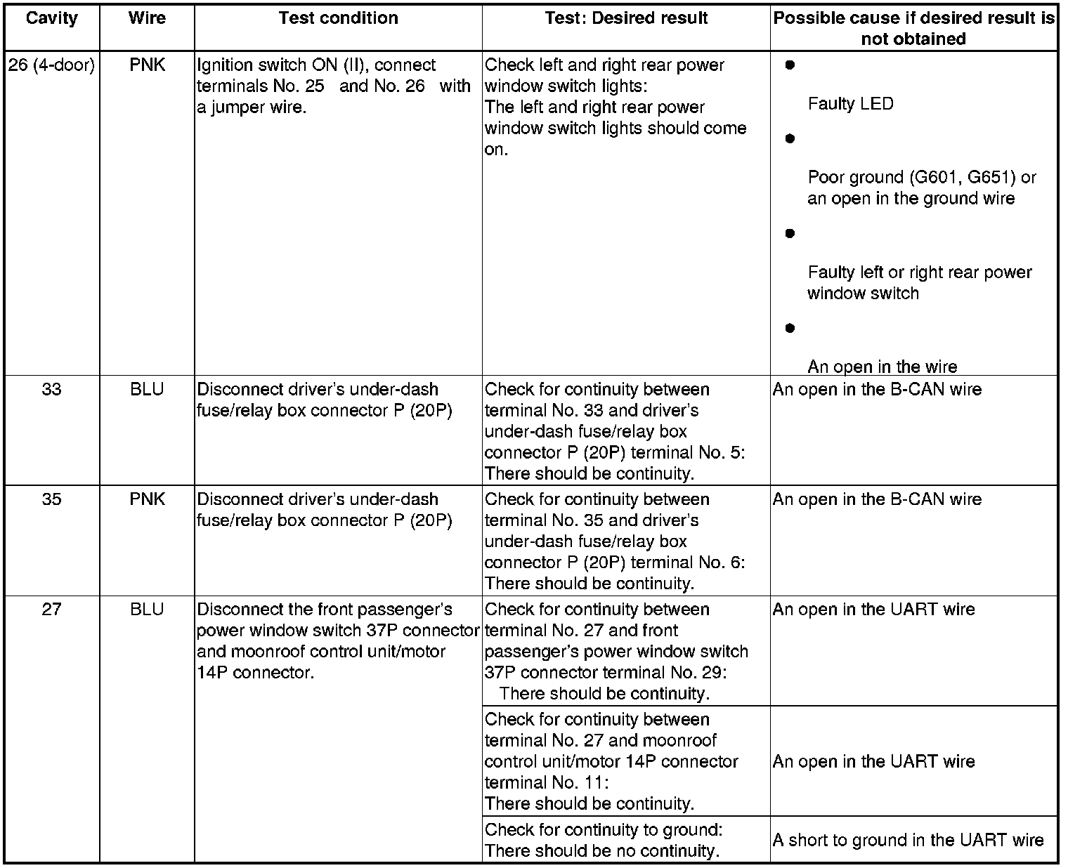 NOTE: Before testing, troubleshoot the multiplex integrated control unit first, using B-CAN System Diagnosis Test Mode A.