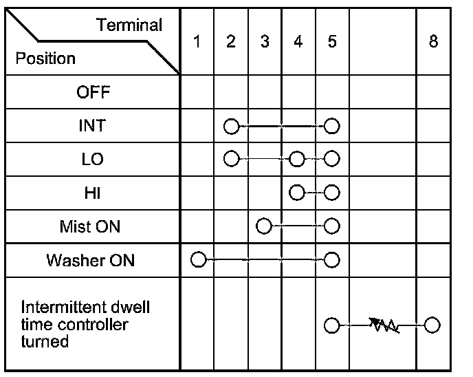 5. Check for continuity between the terminals in each switch position according to the table.