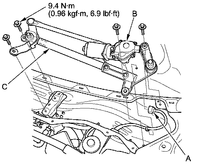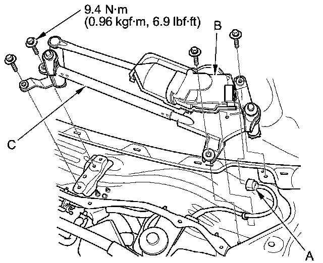 2. Install the wiper motor to the windshield wiper linkage assembly in the reverse order of removal.