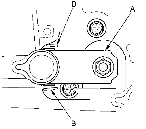 3. Install the link to the windshield wiper motor shaft, then align the mark (A) of the link and the mark (B) of the wiper linkage assembly (4-door), or align the link (A) and the mark (B) of the wiper linkage assembly (2-door).