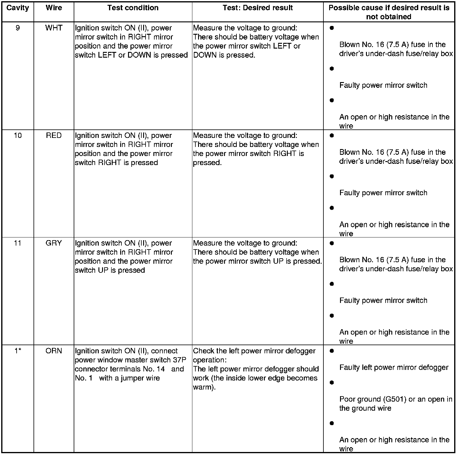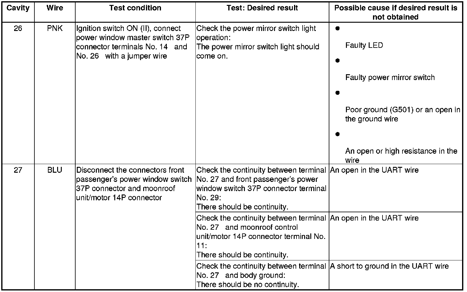 - If all the input tests prove OK, the power window master switch must be faulty, replace the power window master switch.