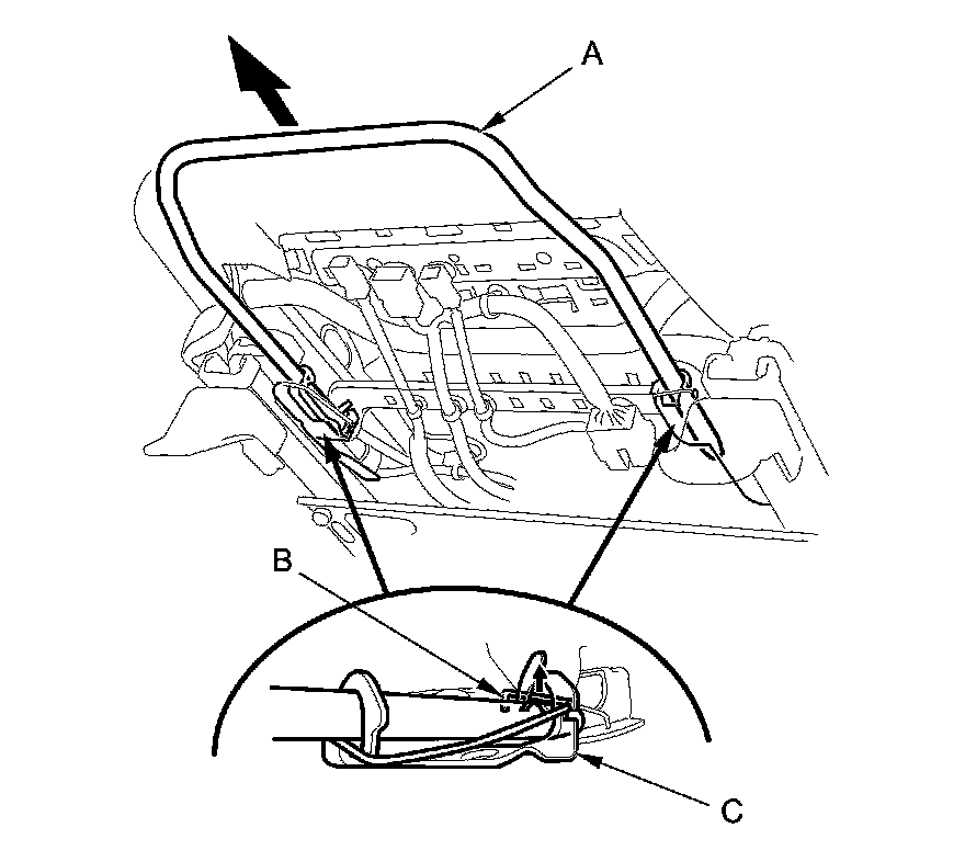 2. Lift up the front seat, and pull out the slide lever (A) while prying up the spring (B) from the lever holders (C) of both seat tracks, then remove the lever.