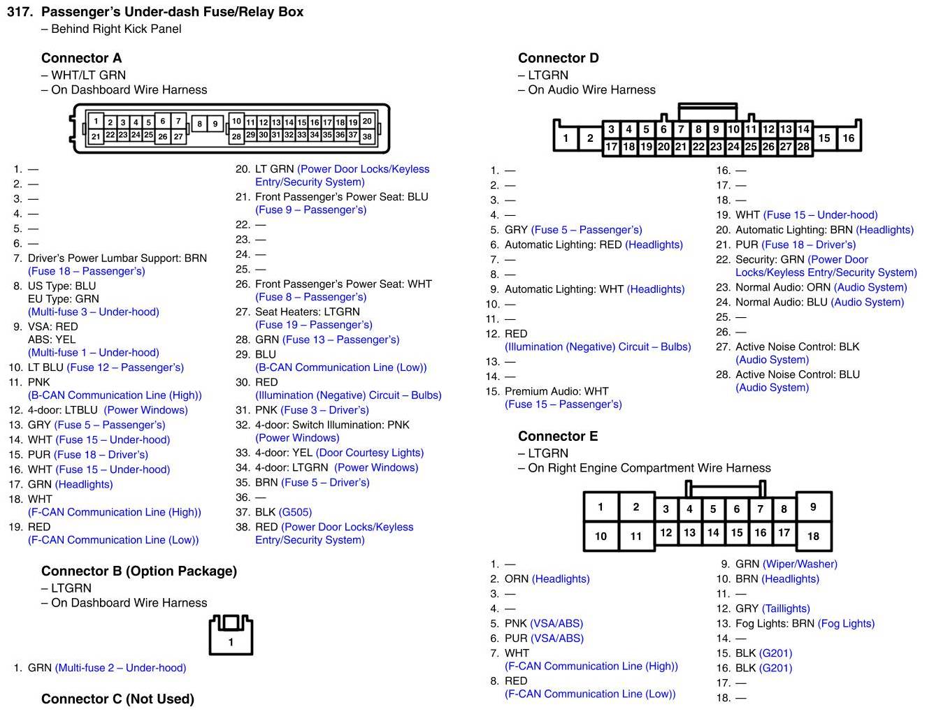 Passenger's Under-dash Fuse/Relay Box Connector View