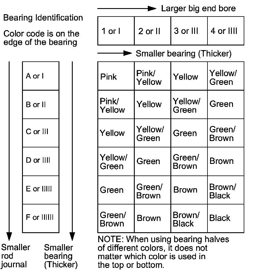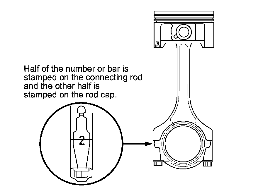 Numbers or bars have been stamped on the side of each connecting rod as a code for the size of the big end. Use them, and the letters or bars stamped on the crank (codes for rod journal size), to choose the correct bearings. If the codes are indecipherable because of an accumulation of dirt and dust, do not scrub them with a wire brush or scraper. Clean them only with solvent or detergent.
