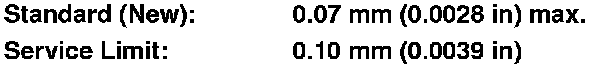 7. Calculate the difference between cylinder bore diameter and the piston diameter. If the clearance is near or exceeds the service limit, inspect the piston and the cylinder bore for excessive wear.