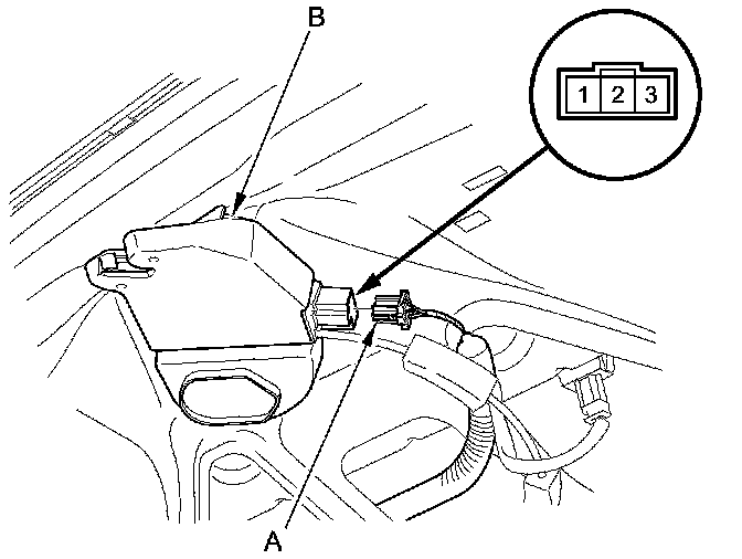 2. Disconnect the 3P connector (A) from the trunk lid latch assembly (B).