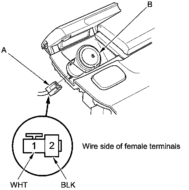 2. Disconnect the 2P connector (A) from the front accessory power socket (B).