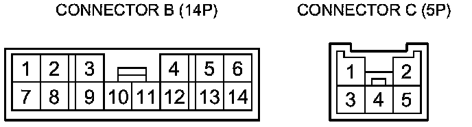 2. Disconnect under-hood fuse/relay box connector B (14P) and C (5P).
