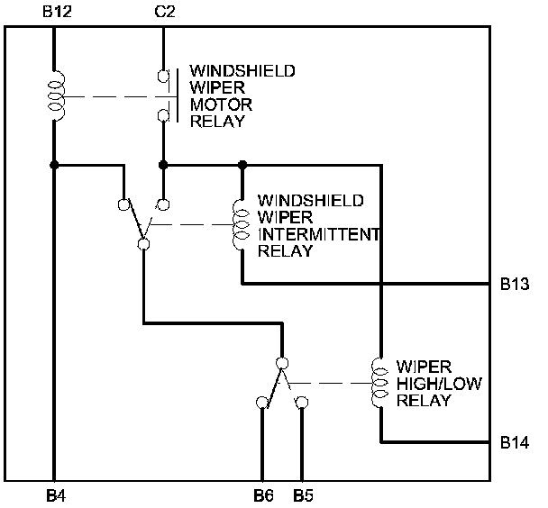 There should be continuity between terminals B4 and B5 when battery power is connected to terminals B12 and C2, and battery ground is connected to terminals B4 and B14.