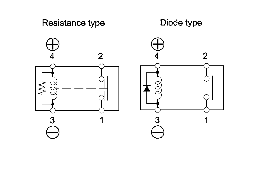 - There should be continuity between terminals No. 1 and No. 2 when battery power is connected to terminal No. 4, and battery ground is connected to terminal No. 3.