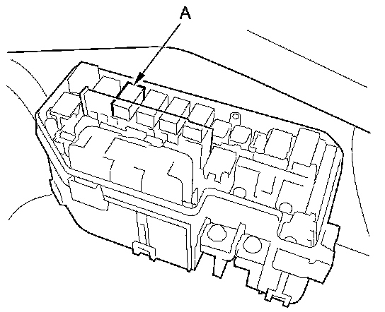 44. Remove PGM-FI main relay 2 (FUEL PUMP) (A) from the driver's under-dash fuse/relay box.