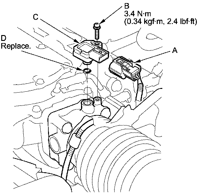 Install the parts in the reverse order of removal with a new O-ring (D).