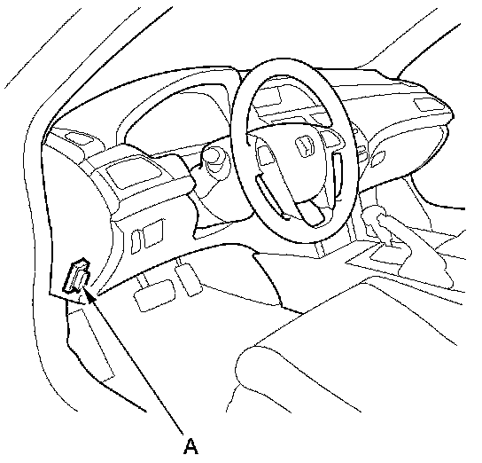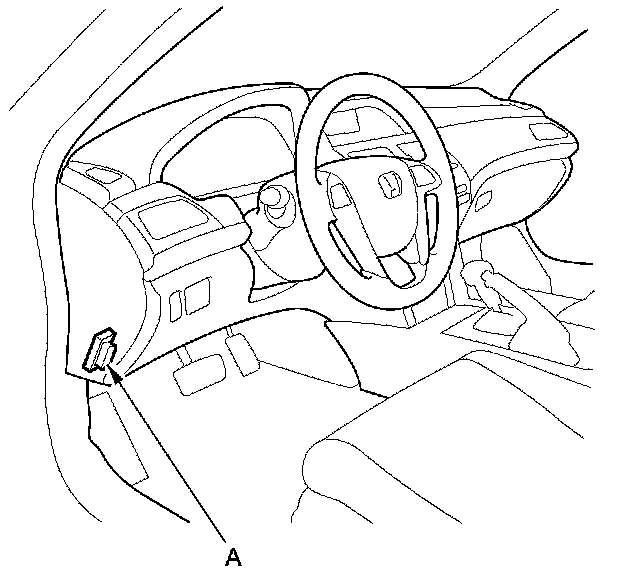 2. If the MIL stays on, connect the HDS to the data link connector (DLC) (A) located under the driver's side of the dashboard.