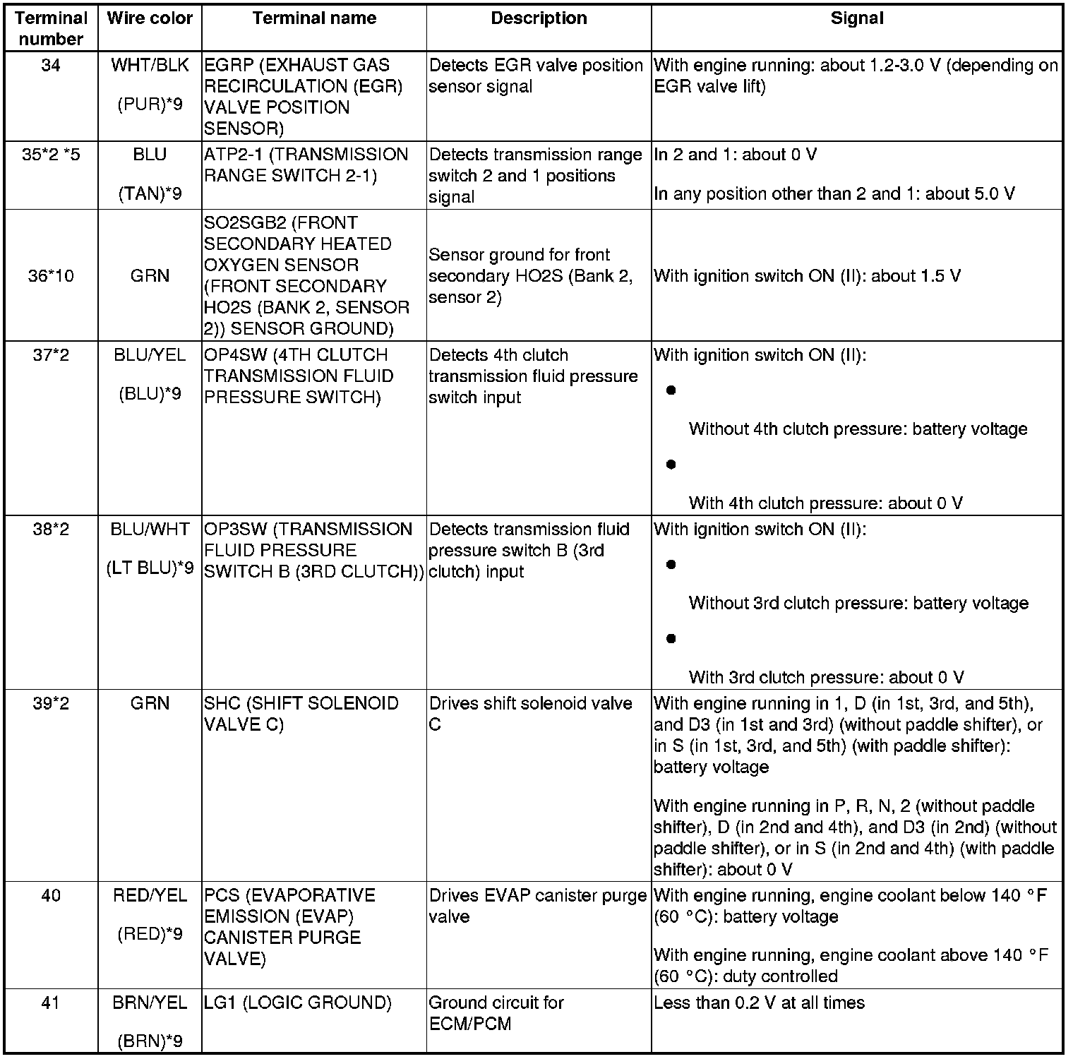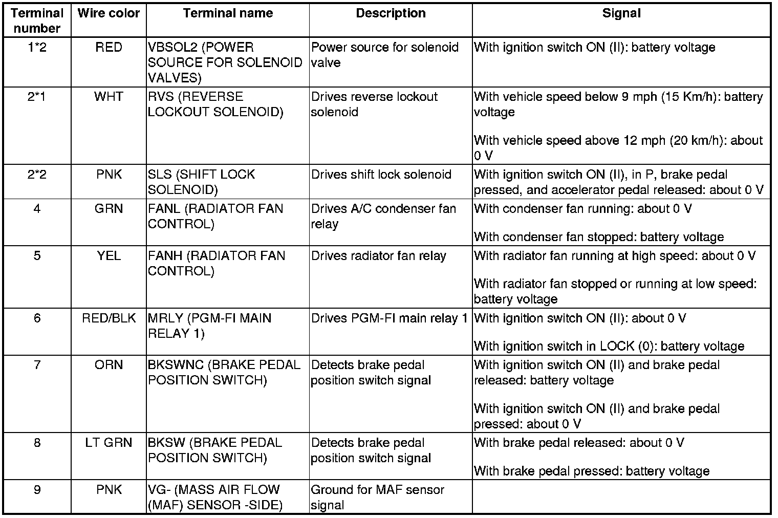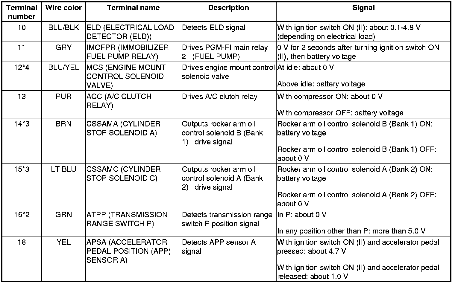 Pinout Values and Diagnostic Parameters