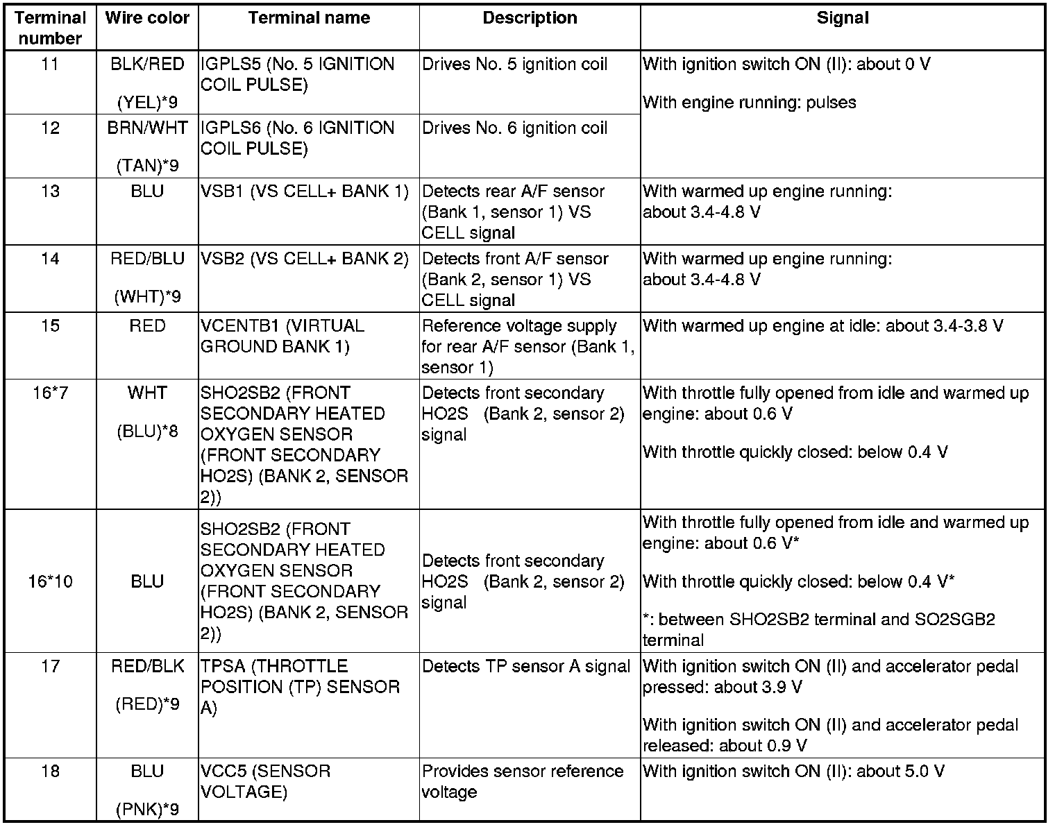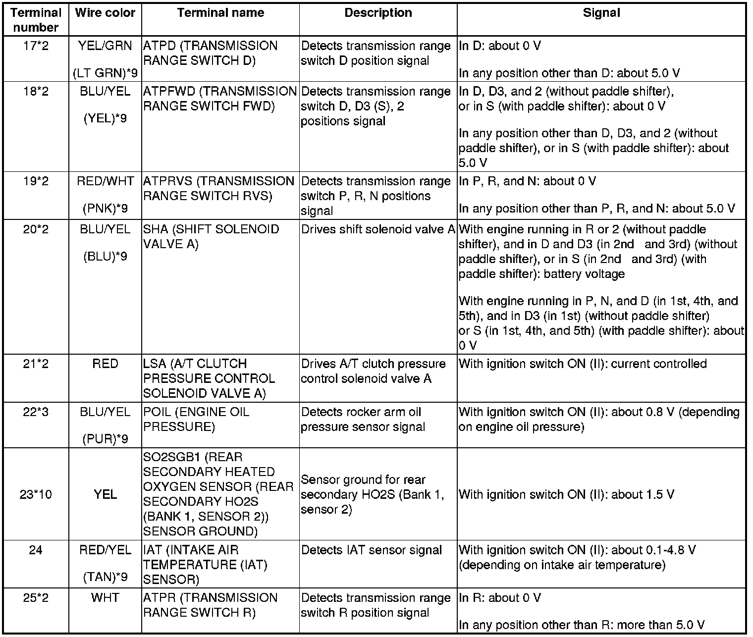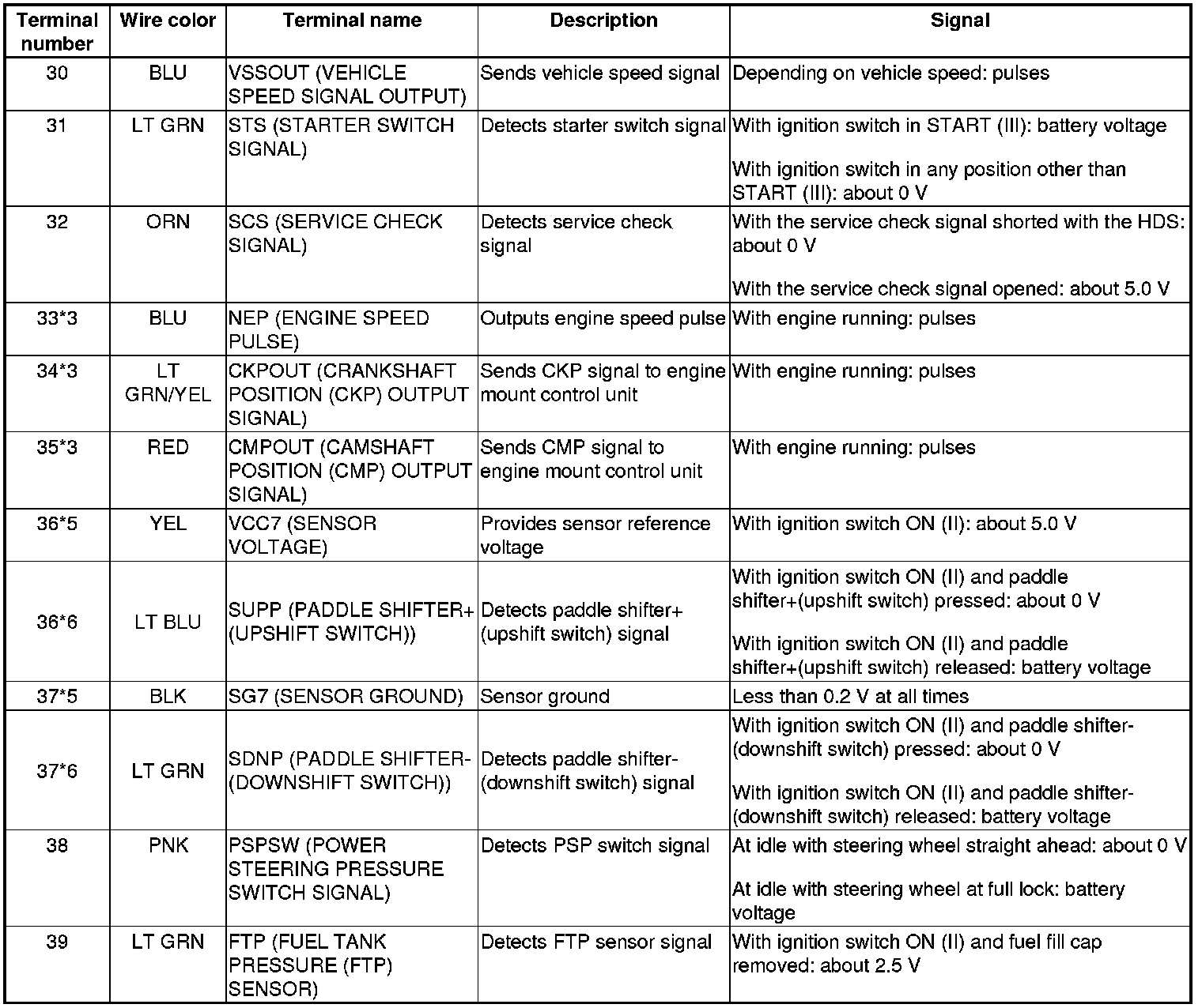 Pinout Values and Diagnostic Parameters