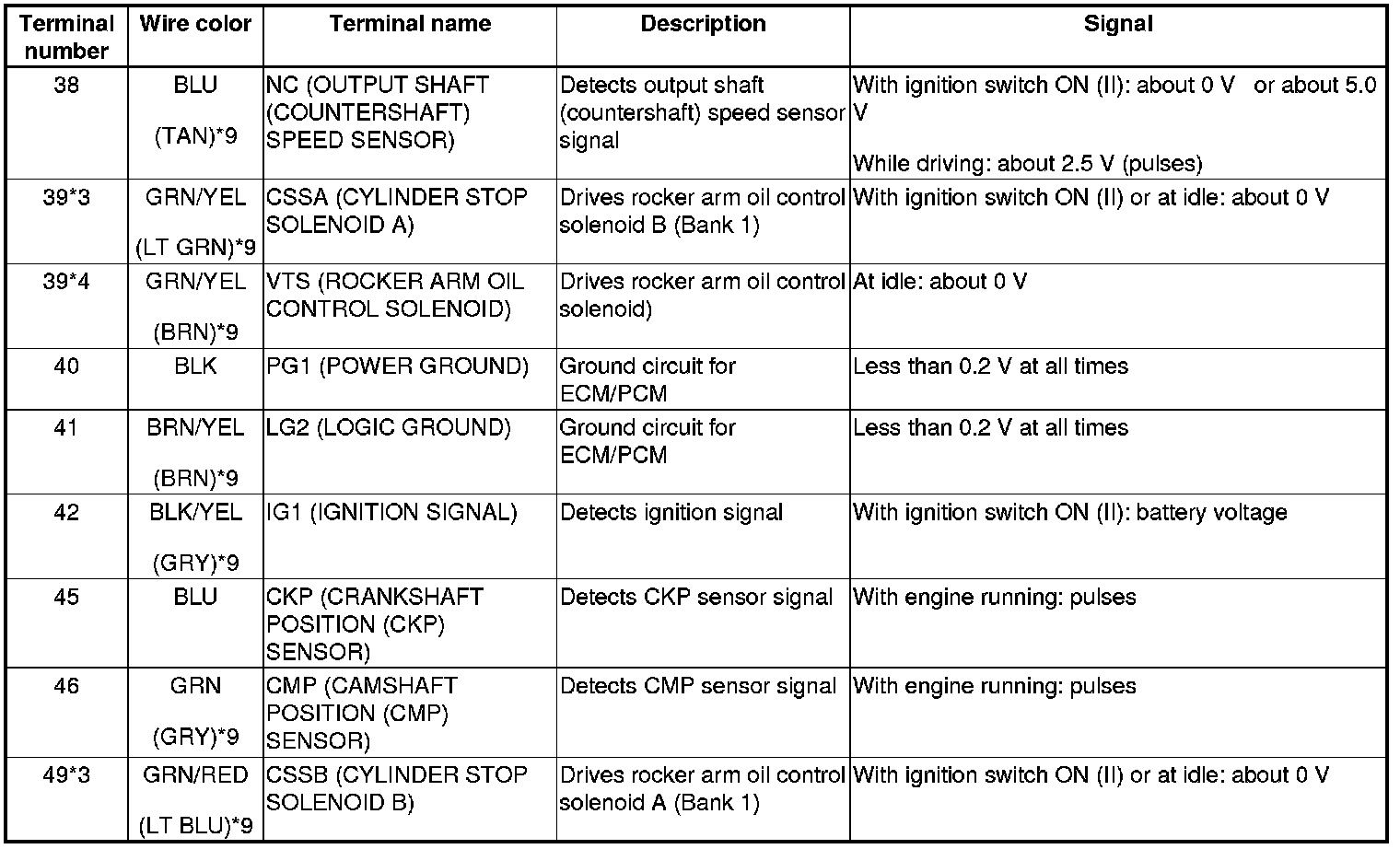 ECM/PCM Inputs and Outputs at ECM/PCM Connector B (triangle) (49P)