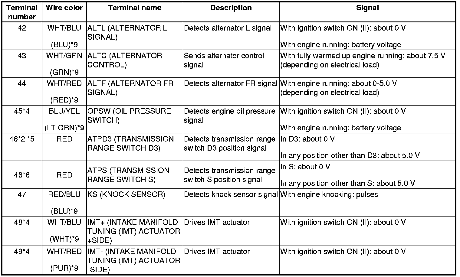 ECM/PCM Inputs and Outputs at ECM/PCM Connector A (square) (49P)