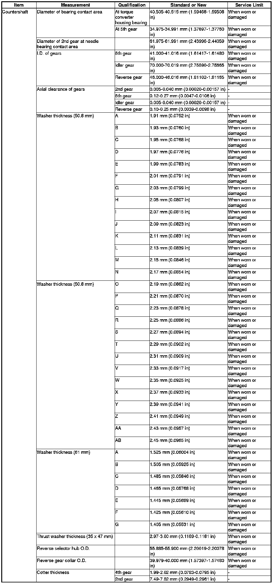 Countershaft Specification(s) (A/T)