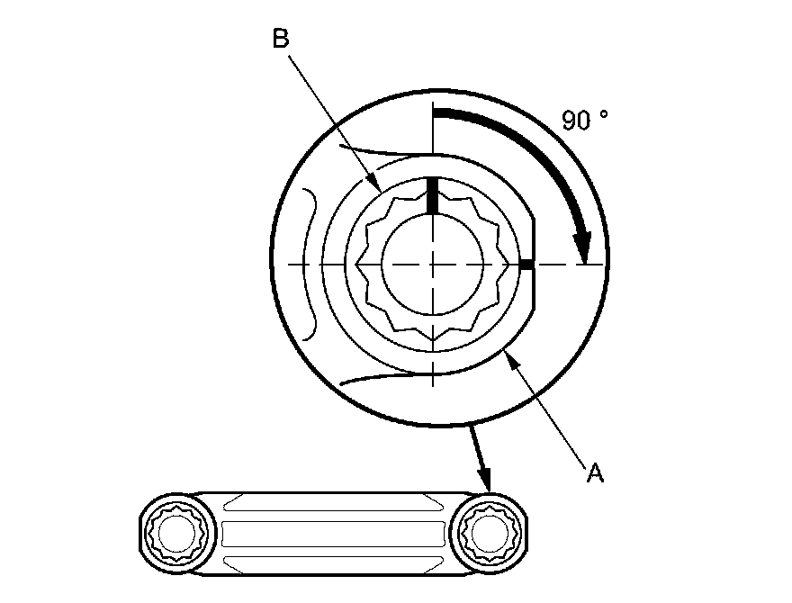 Torque the bolts (E) to