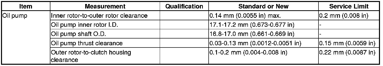 Oil Pump Specification(s) (M/T)