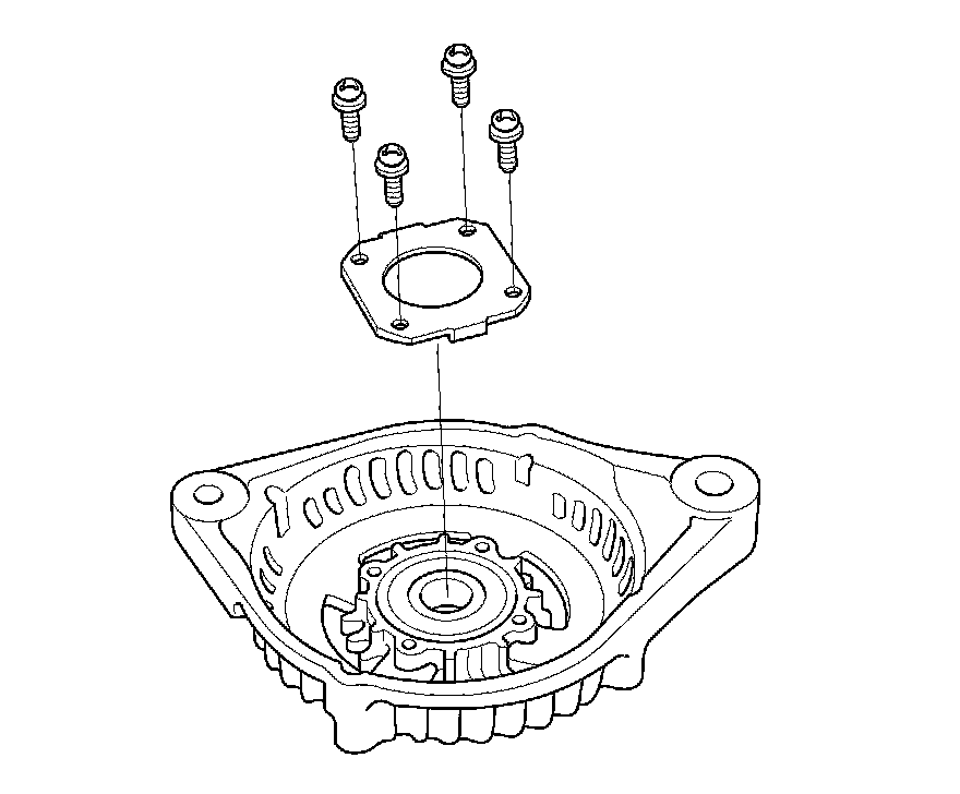 24. After assembling the alternator, turn the pulley by hand to make sure the rotor turns smoothly and without noise.