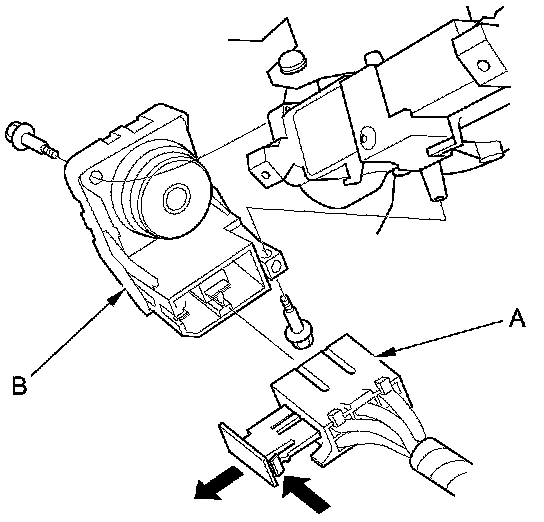3. Disconnect the 5P connector (A) from the ignition switch (B).
