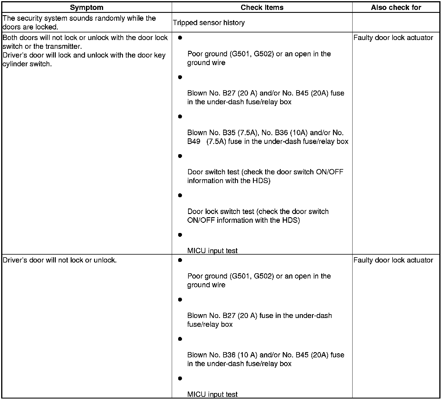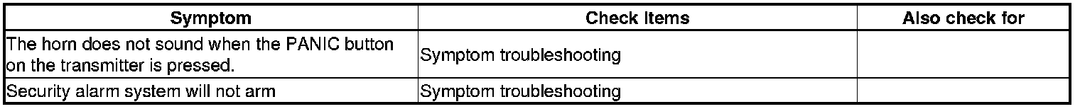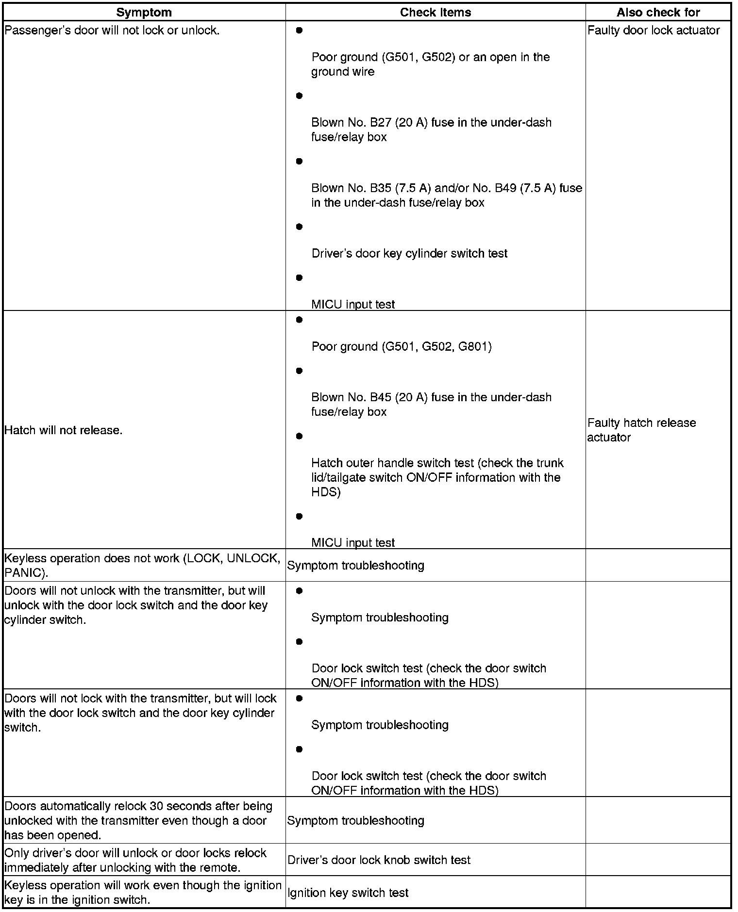 Keyless/Power Door Locks/Security System Symptom Troubleshooting Index