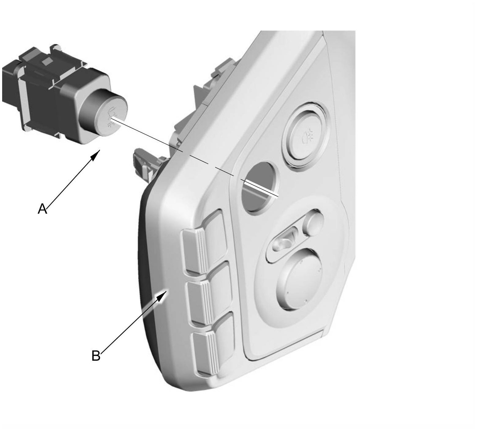 3. Push out the VSA OFF switch (A) from the back of the instrument panel (B).
