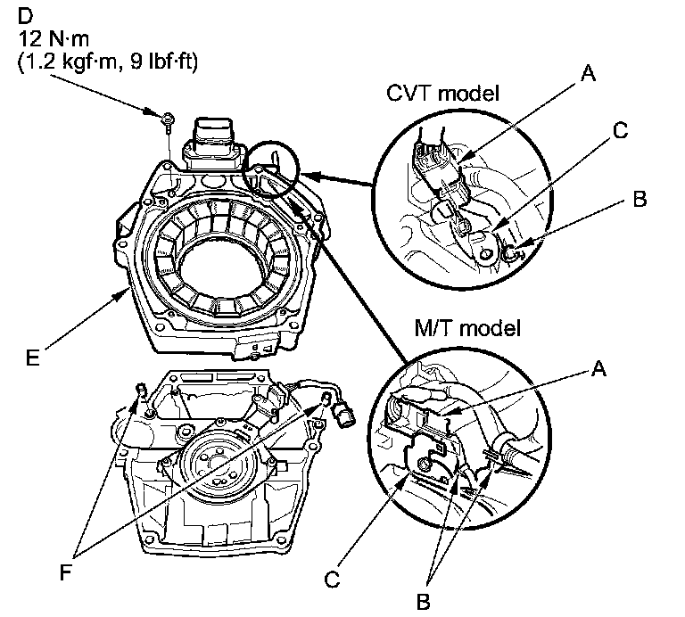 NOTE: Set the dowel pins (F) in the IMA motor housing before installing the motor stator on the engine.