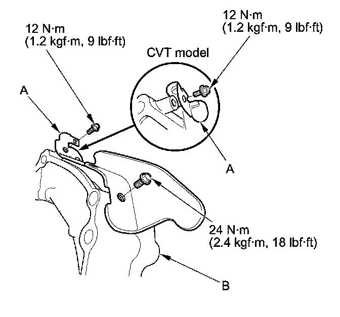 4. Remove the bracket (A) from the IMA motor housing (B).