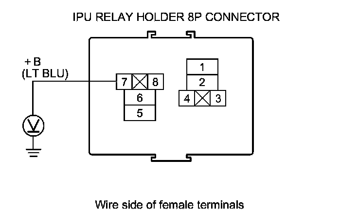 14. Measure the voltage between IPU relay holder (MCM relay 1) 8P connector terminal No. 6 and body ground.
