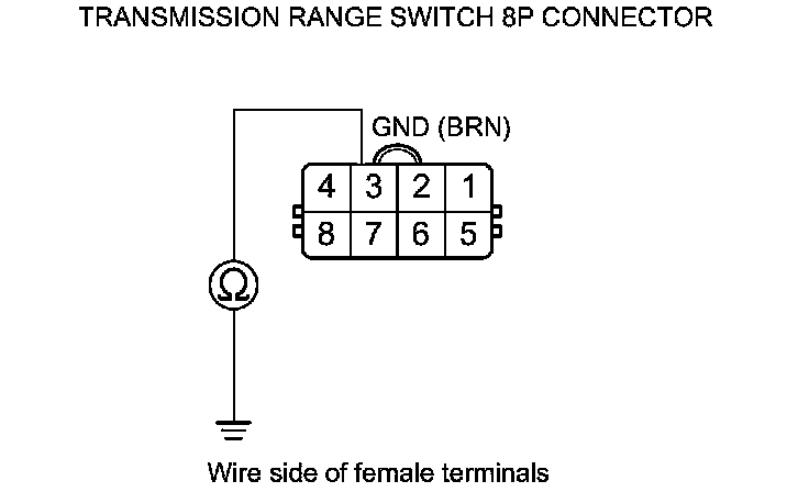 32. Check for continuity between transmission range switch 8P connector terminal No. 3 and body ground.