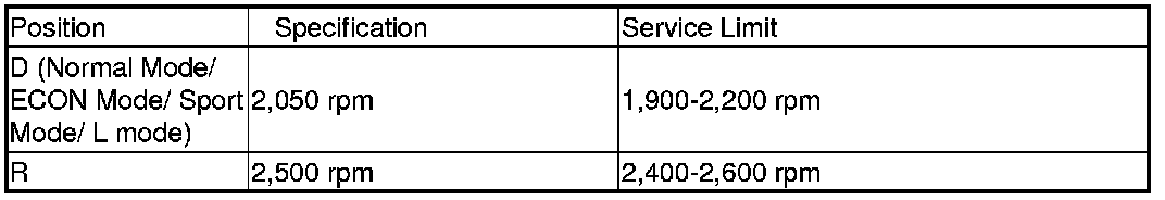 10. Allow 2 minutes for cooling, then repeat the test with the shift lever in D with the ECON Mode and the Sport Mode.