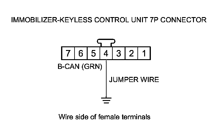 21. Connect immobilizer-keyless control unit 7P connector terminal No. 4 and body ground with a jumper wire.