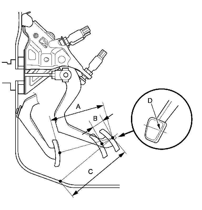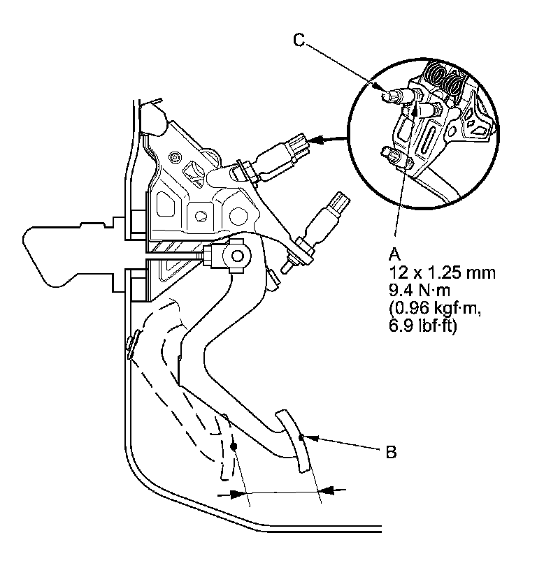NOTE: Measure the clutch pedal height from middle of the clutch pedal cover or the clutch pedal pad cover (C).