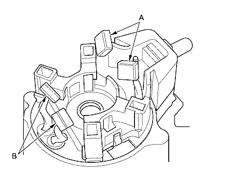 12. Check for continuity between the (+) brushes (A) and the (-) brushes (B). If there is continuity, replace the brush holder set.