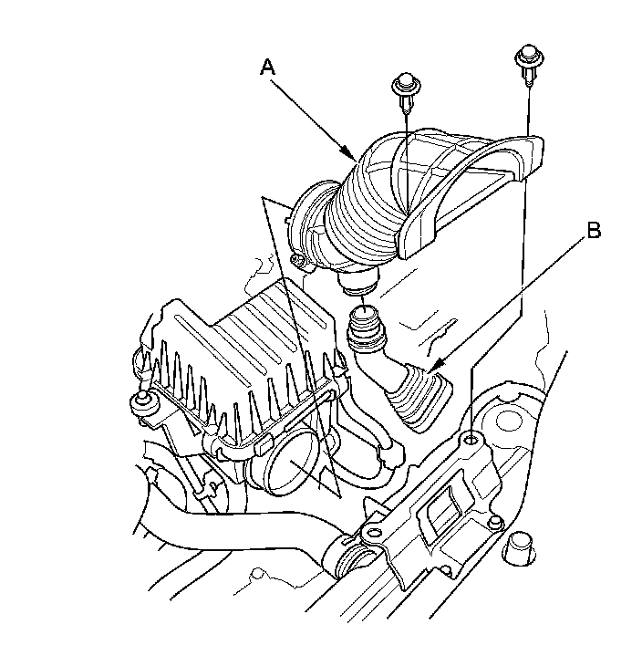20. Install the resonator chamber joint (A) and the intake air tube (B).