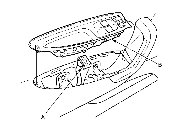 3. Disconnect the 22P connector (A) from the power window master switch (B).