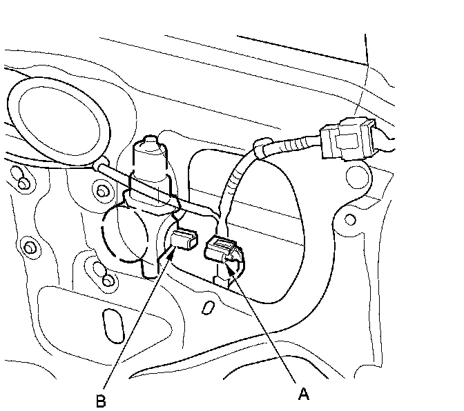 5. Disconnect the 6P connector (A) from the driver's power window motor (B).