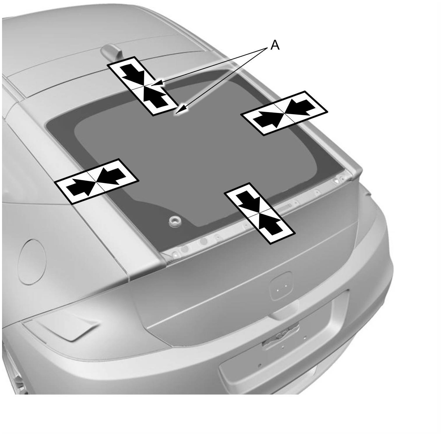 4. If the old upper rear window will be reinstalled, make alignment marks (A) across the glass and the body with a grease pencil.